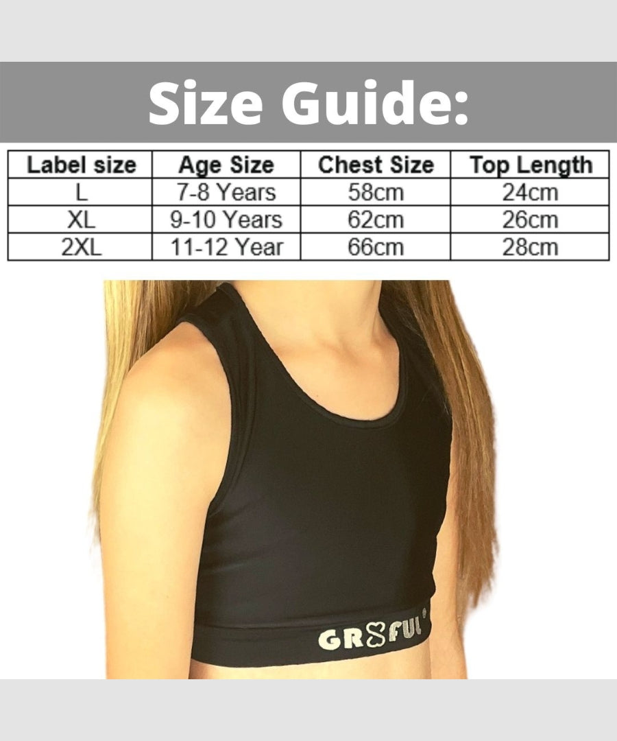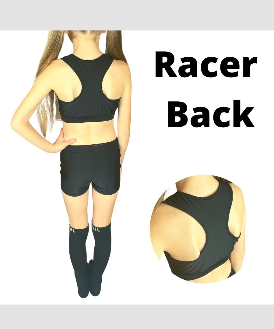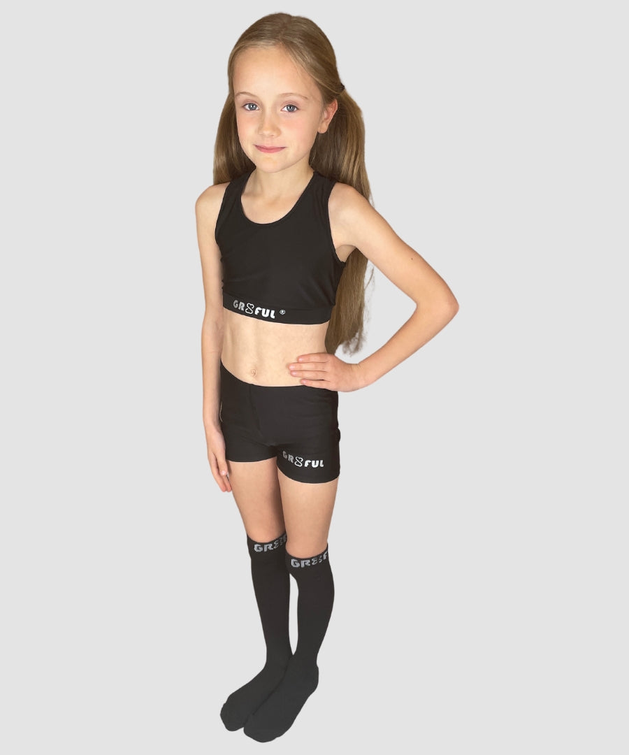 gr8ful® Sports Bra Crop Top for Girls | Black | Fab for Running, Dance, Cheerleading, Trampoline Fitness & Gymnastics | Racer Back, Supportive Bras, Dri Fit Quick Dry Workout top