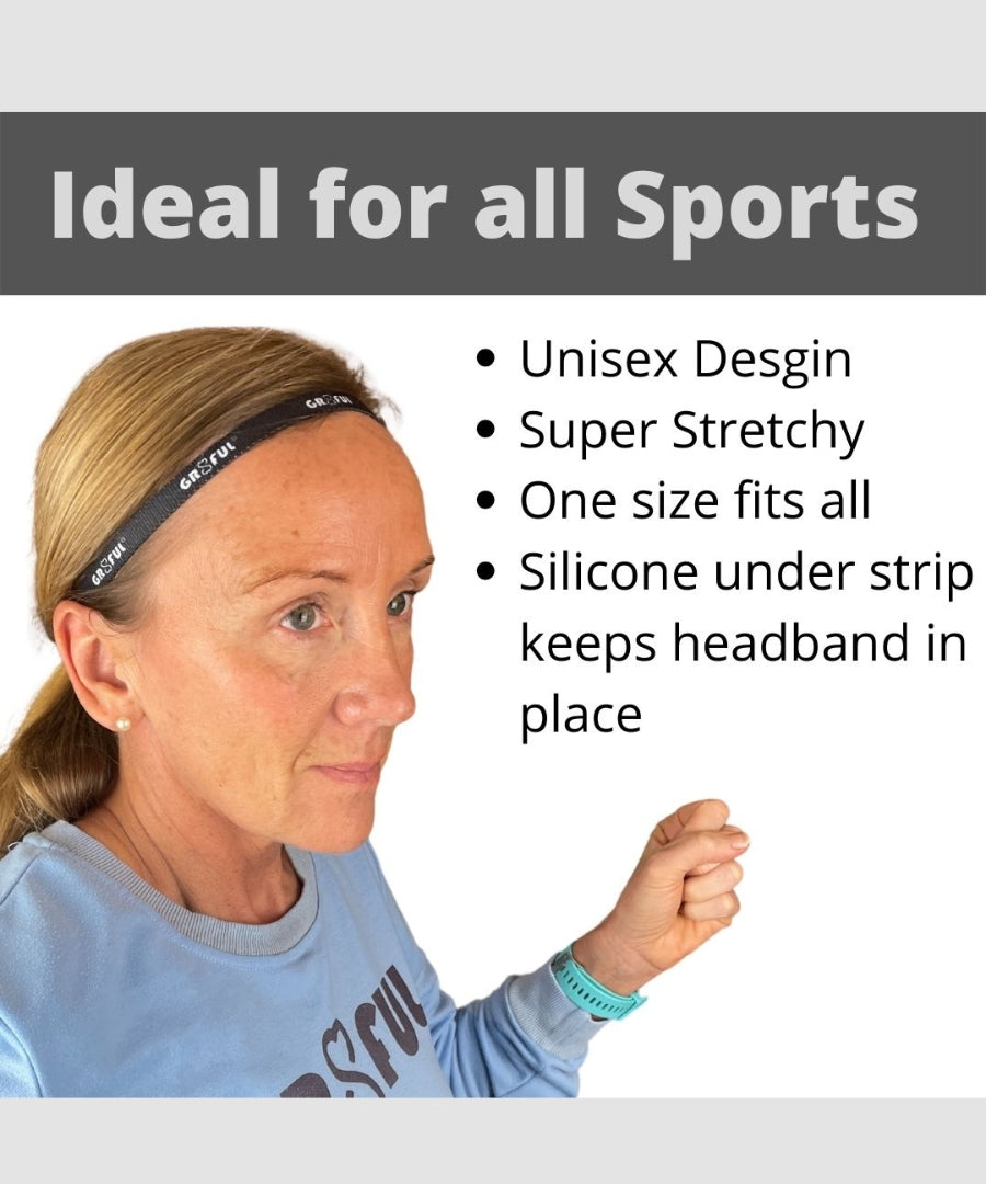 gr8ful® Sports Headband for Men, Women, Boys & Girls | Non-Slip Sweatband for Sport, Gym, Workout, Cycling, Yoga, Everyday use & Running | Lightweight Stretchy Quick Dry Fabric | One size