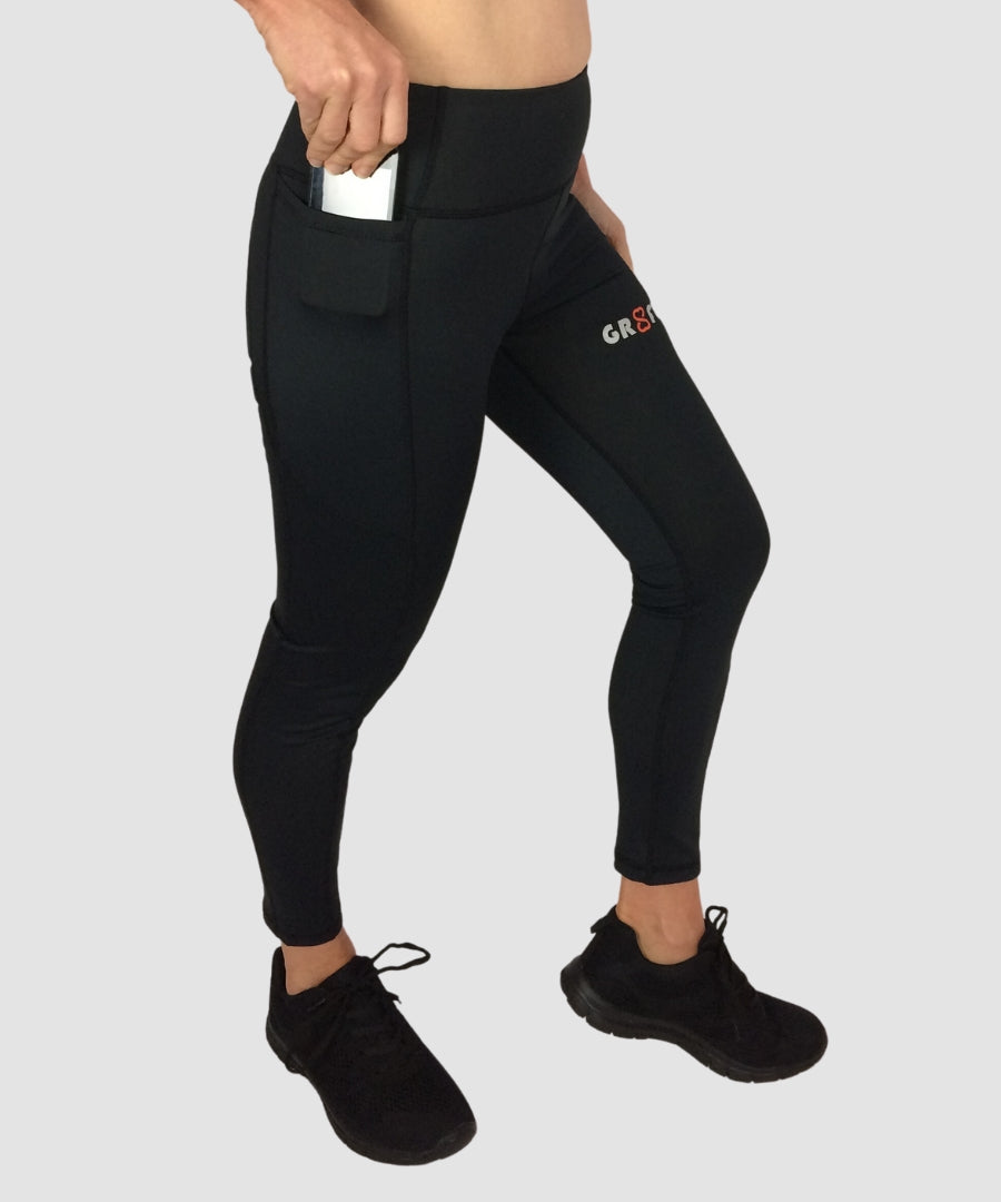 gr8ful® Womens Sports Leggings, Workout Indoor or Outdoor pants, Running Tights with Pockets, High Impact Athletic Activewear Yoga & Pilates, Slimming Tummy Compression & Butt Lift, Black