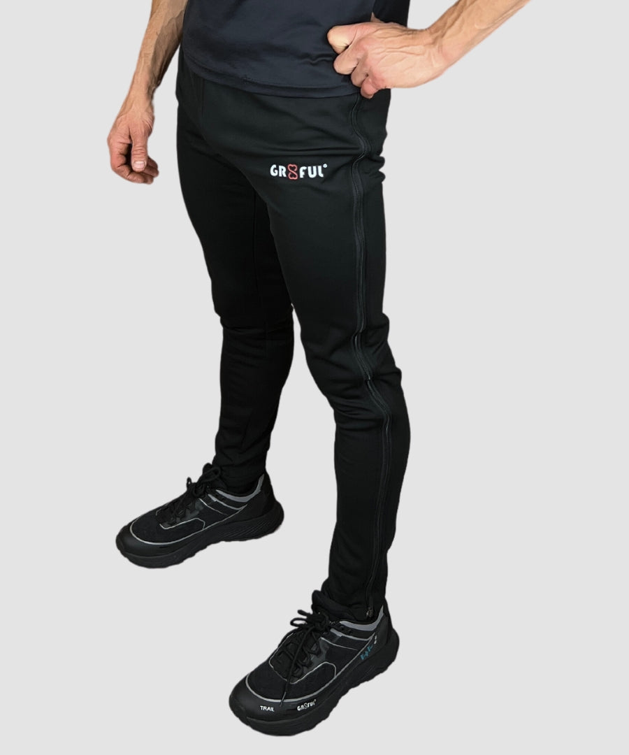 gr8ful® Zip-Off Trousers for Men, Women & Kids | Full Zip Race Fit Leggings for Running, Cycling or All Sports | Tights/Pants Base Layer | Tracksters for Workout Indoor or Outdoor, Black