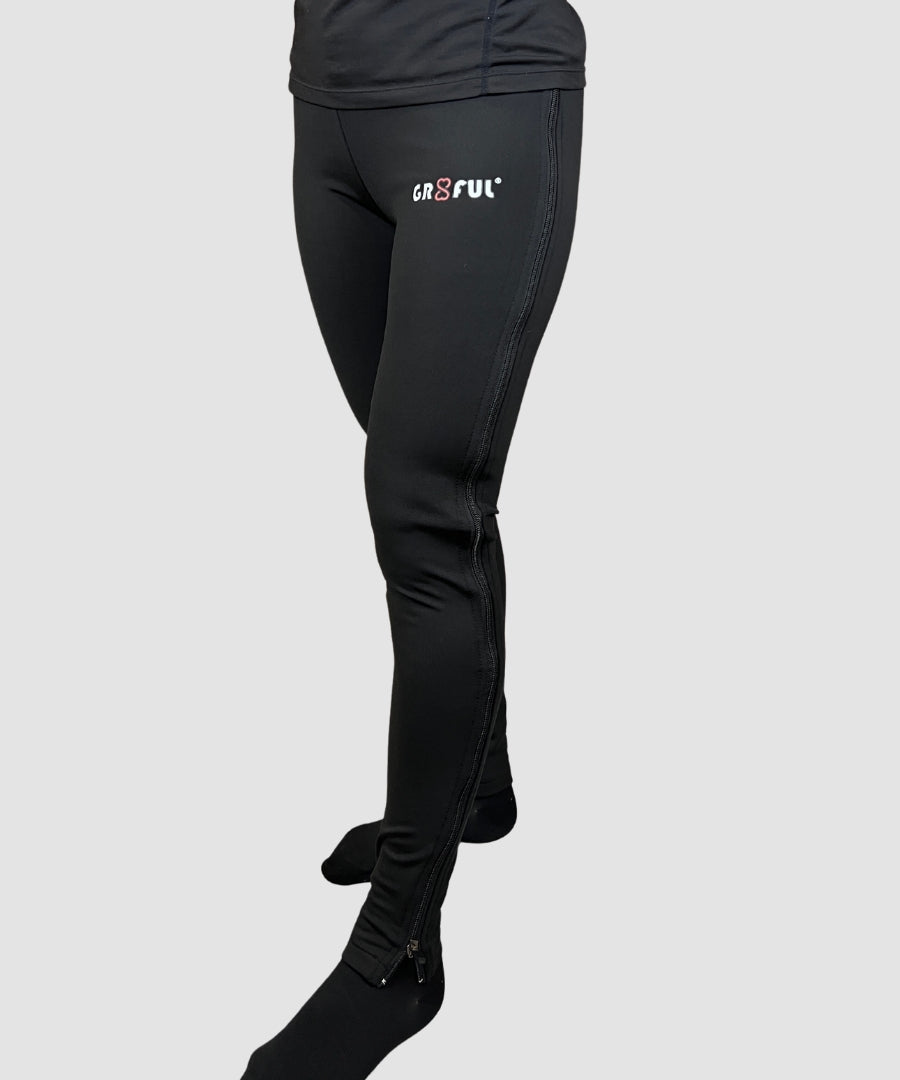 - ✅【UNISEX SPORTS TIGHTS FOR MEN, WOMEN & KIDS】- Sports trousers with elastic waistband. Our gr8ful running tights will keep you warm when out training in the winter months. The leggings are very lightweight but will keep you at the right temperature when playing sports without the worry of getting injured because you are too cold! The zip goes all the way from the ankle to the waist great for racing, training and perfect to wear pre and post race.